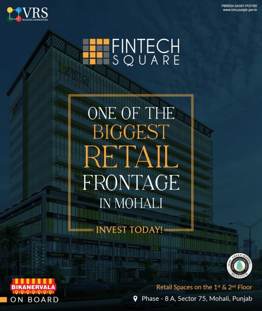 Fintech Square, located in the heart of Mohali, is an exceptional commercial space that caters to the needs of modern businesses. With its cutting-edge infrastructure and state-of-the-art facilities, we offer an ideal environment for businesses to thrive. With its prime location, we provide an ideal office space for companies looking to establish their presence in Mohali’s thriving business ecosystem.
